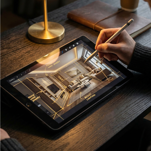 Клиент режет смету? Наше КБ переработает скрытые узлы, чтобы снизить цену реализации без ущерба для дизайна. Для защиты проекта мы делаем VR-визуализацию.
