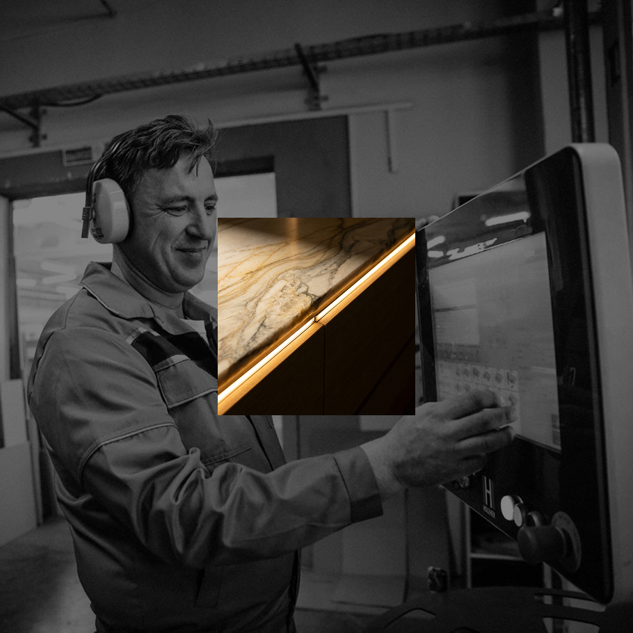 Приезжайте на производство в любой день, чтобы подобрать камень, проконтролировать процесс нанесения рубашки на шпон, предсборки сборки вашего проекта (латунь, камень, массив). Мы абсолютно прозрачны.