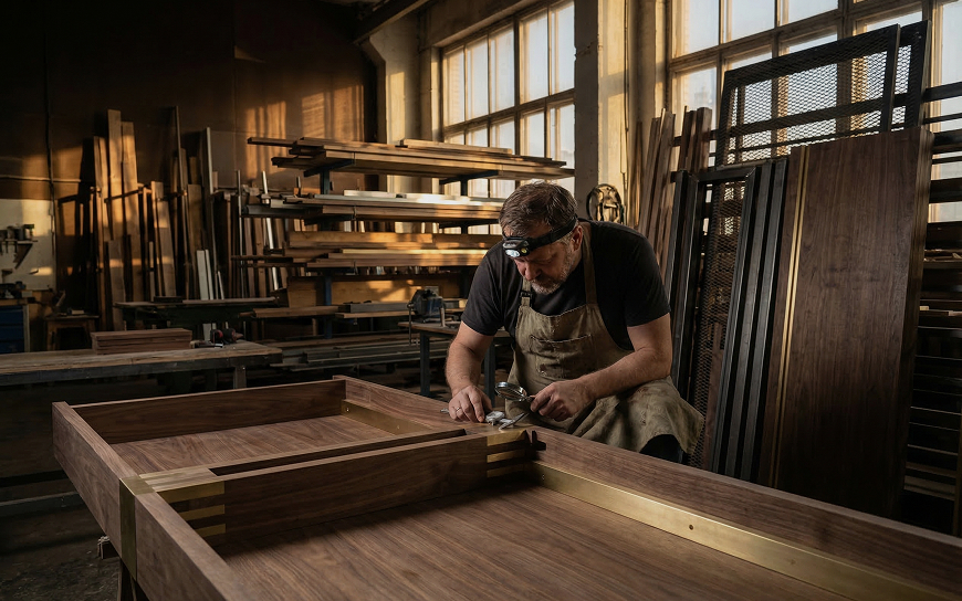 Сложный дизайн требует инженерной смелости. Большинство фабрик заставляют упрощать чертежи: менять шпон на пленку, отказываться от парящих конструкций.